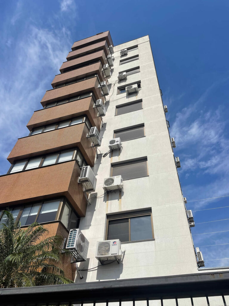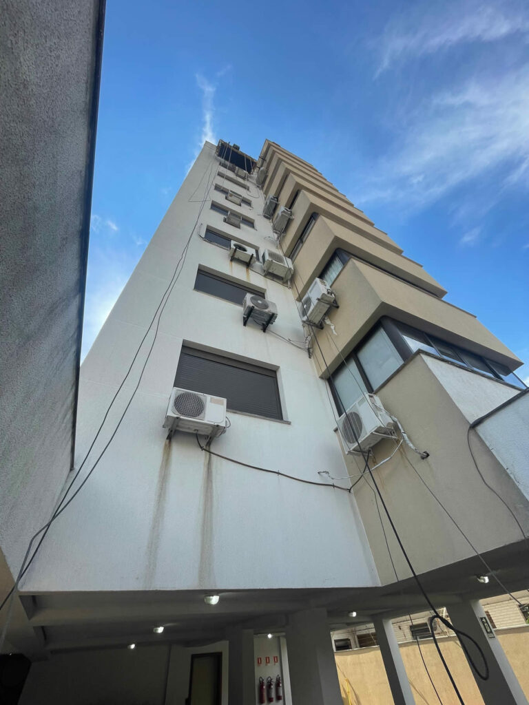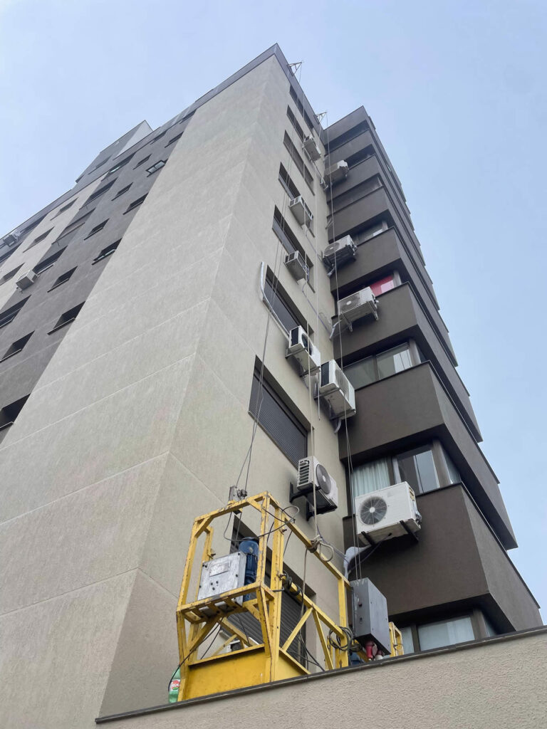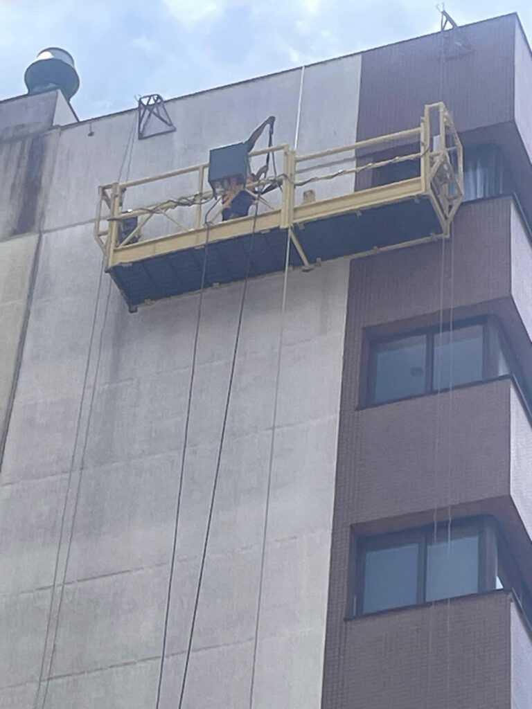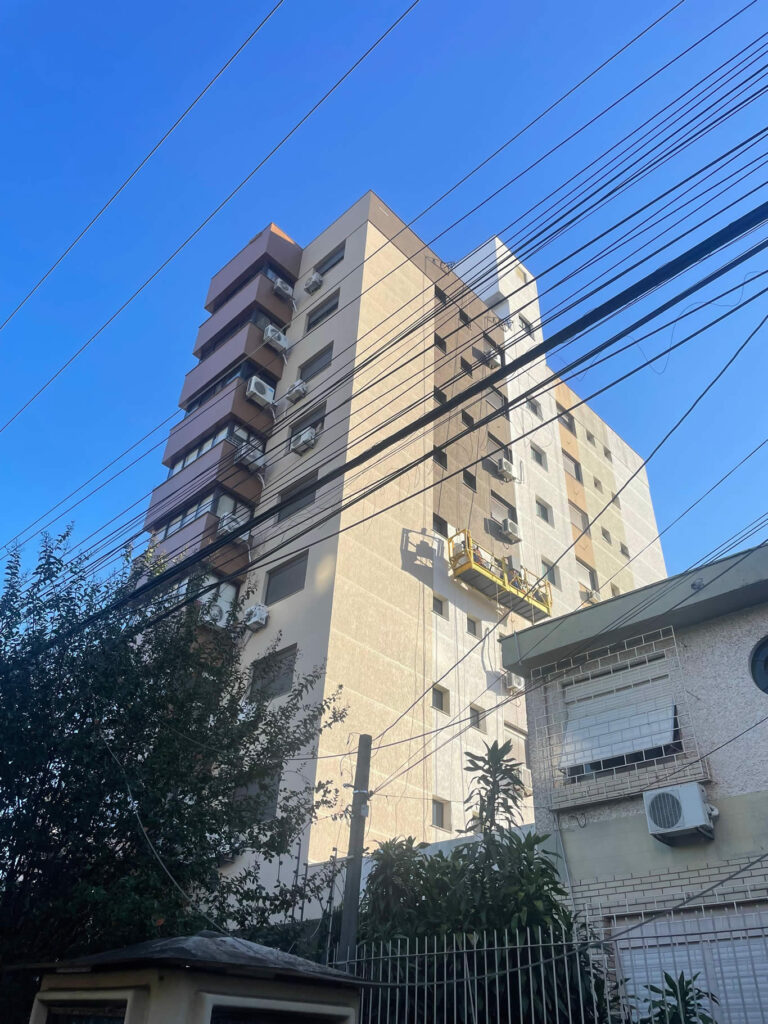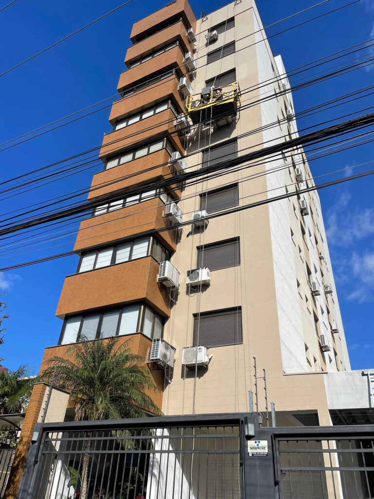 Descricao: Restauração completa da fachada do edifício, incluindo tratamento de fissuras, reforço estrutural e pintura. O trabalho trouxe segurança, durabilidade e valorização estética, garantindo um acabamento moderno e protegido contra desgastes futuros.